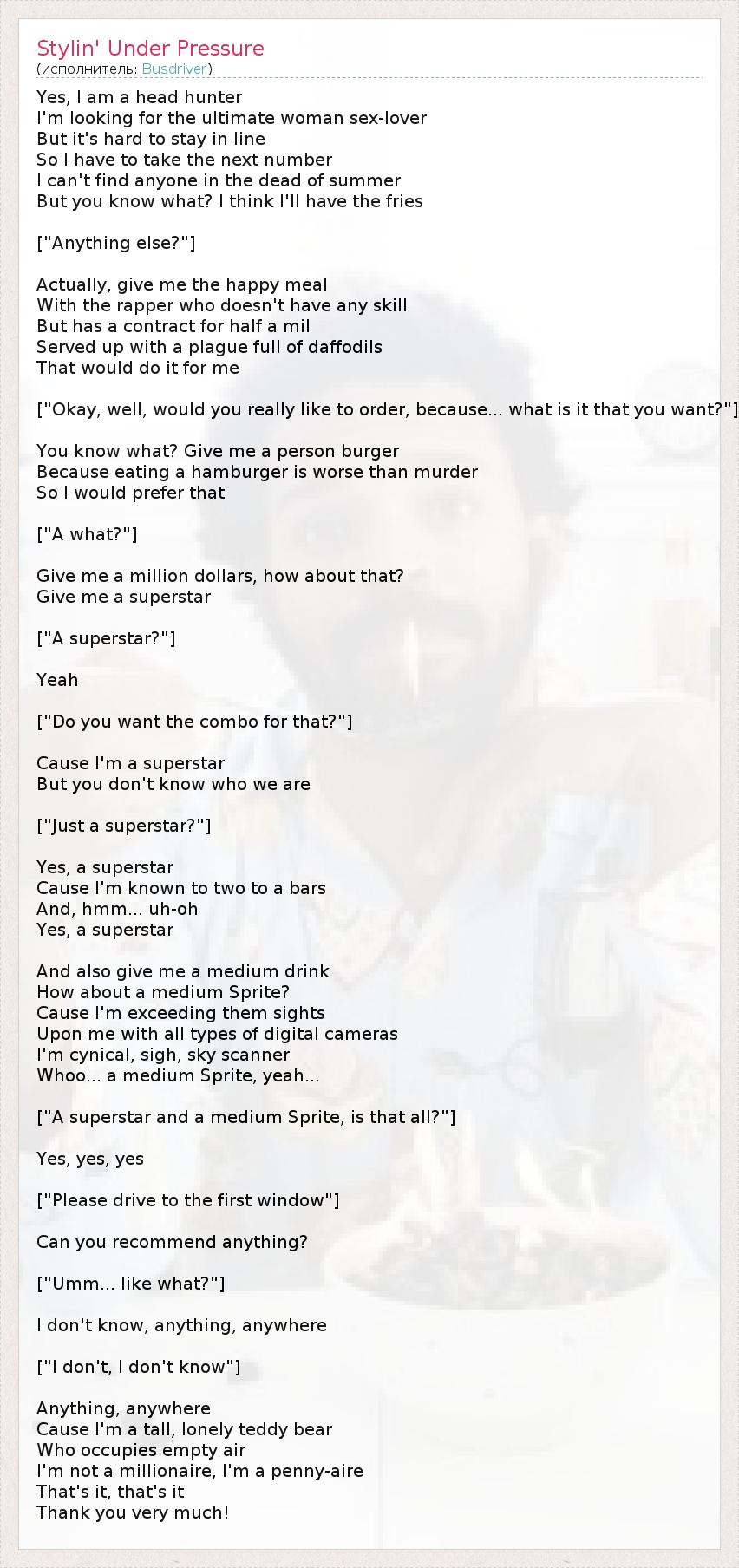 А как ты думаешь, о чем песня "Stylin' Under Pressure" ?