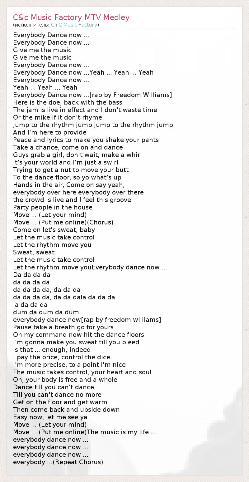 А как ты думаешь, о чем песня "C&c Music Factory MTV Medley" ?