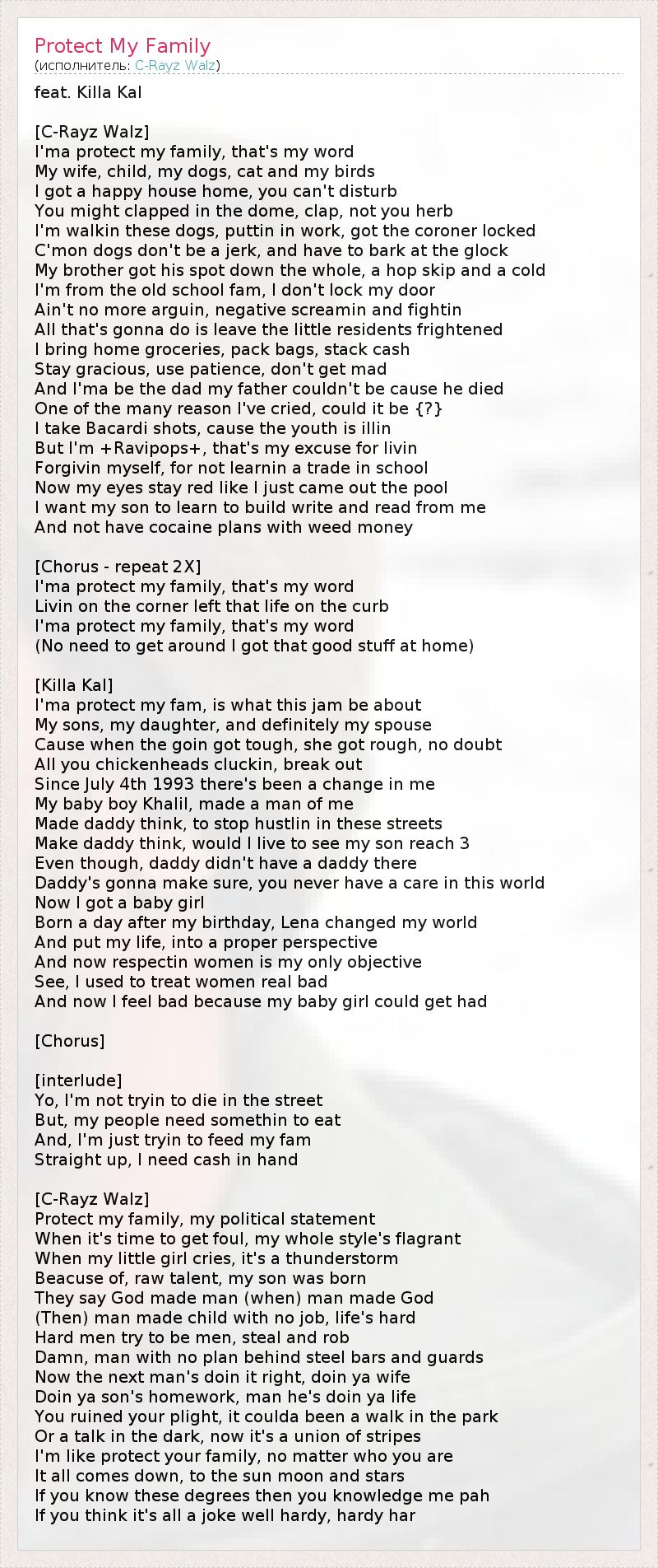 А как ты думаешь, о чем песня "Protect My Family" ?