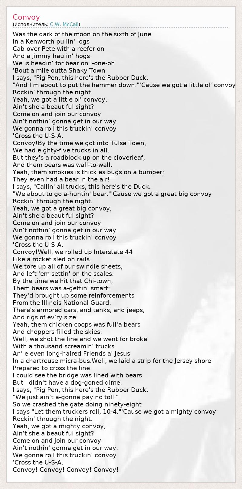 "And I'm about to put the hammer down."'Cause we got a little ol' convoy