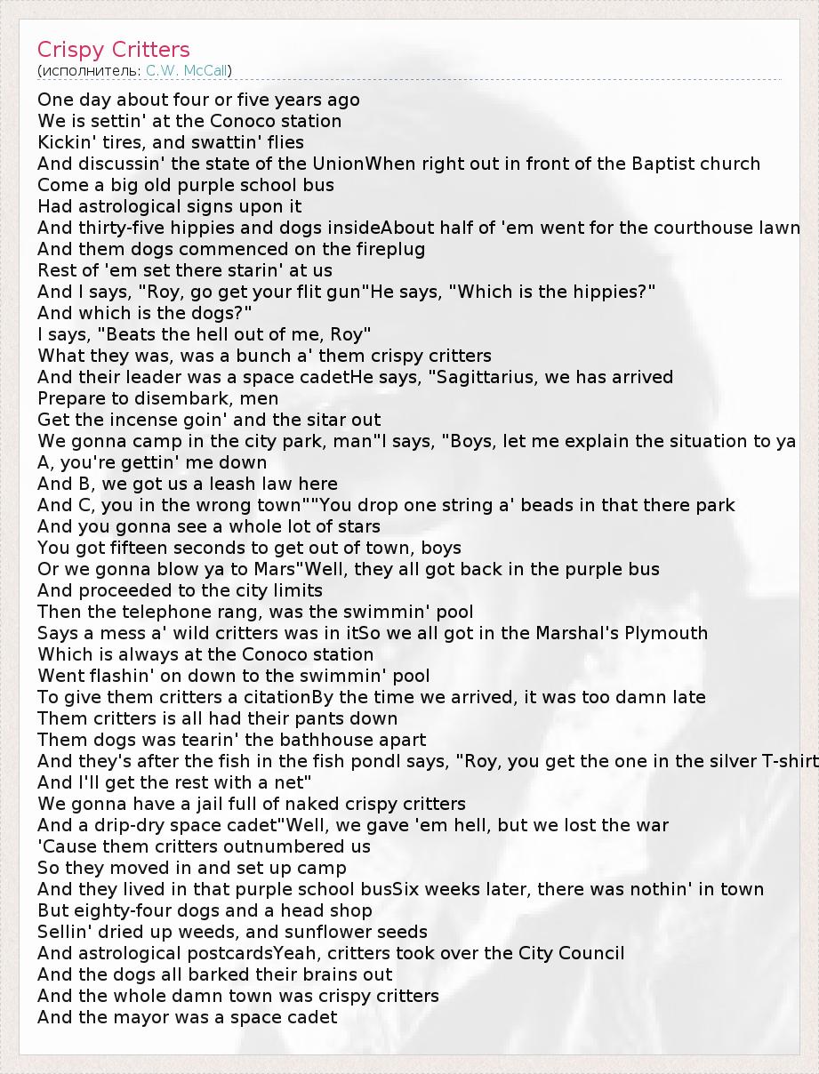 А как ты думаешь, о чем песня "Crispy Critters" ?