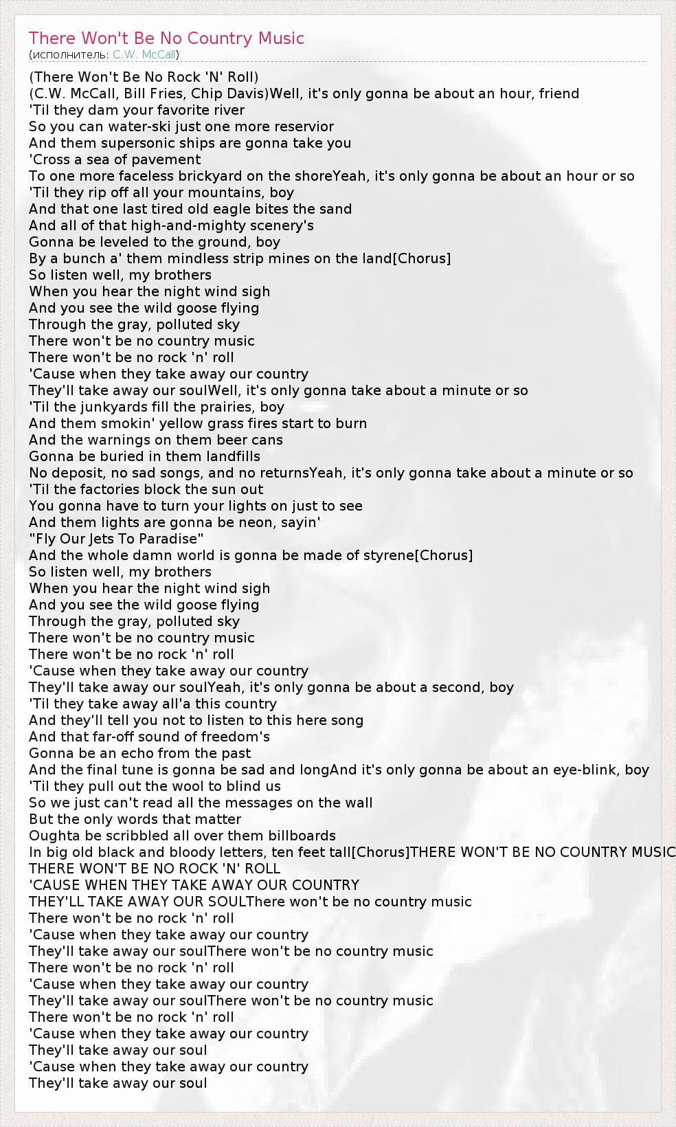 А как ты думаешь, о чем песня "There Won't Be No Country Music" ?
