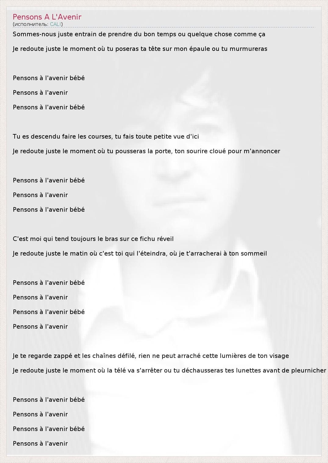 А как ты думаешь, о чем песня "Pensons A L'Avenir" ?