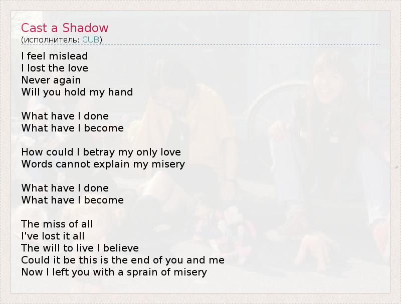 А как ты думаешь, о чем песня "Cast a Shadow" ?