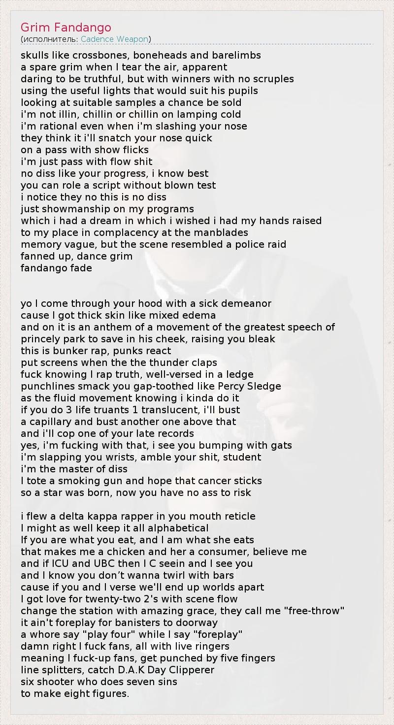А как ты думаешь, о чем песня "Grim Fandango" ?