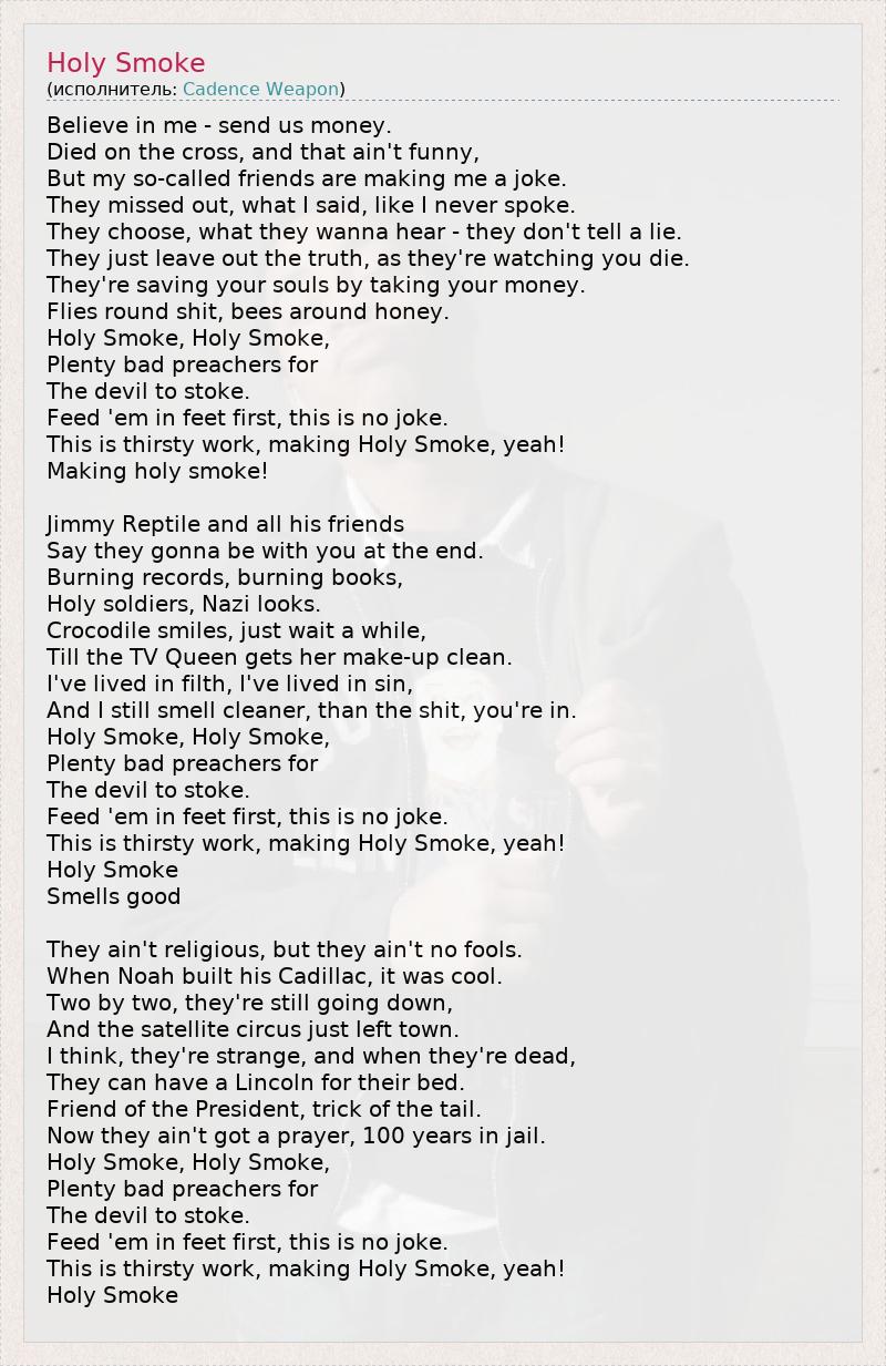 Holy Smoke, Holy Smoke,