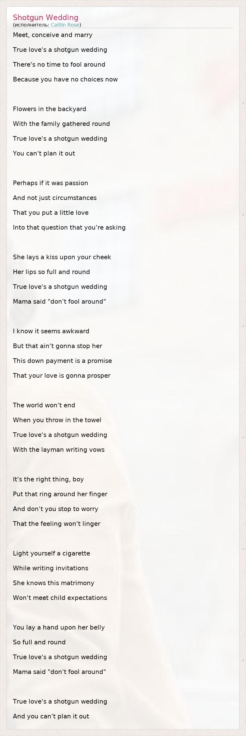 А как ты думаешь, о чем песня "Shotgun Wedding" ?