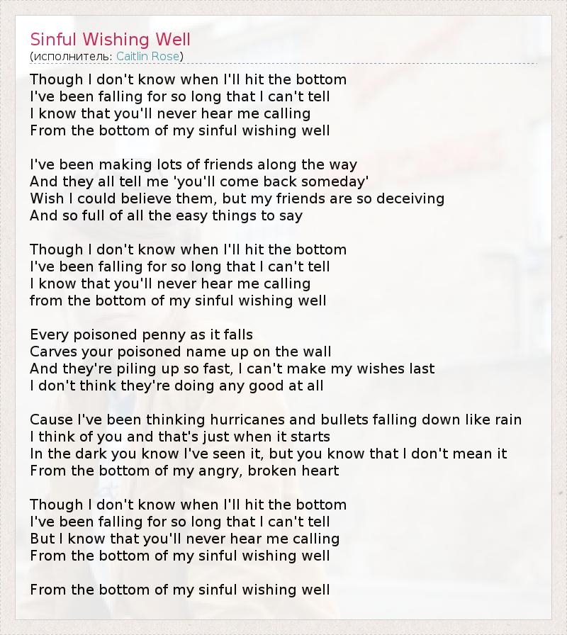 from the bottom of my sinful wishing well
