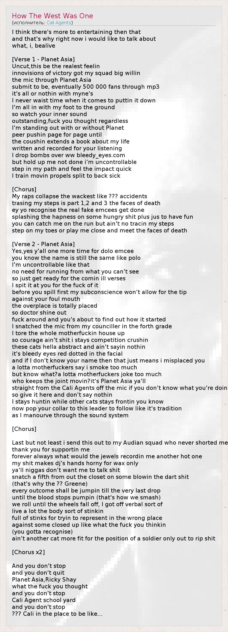 А как ты думаешь, о чем песня "How The West Was One" ?