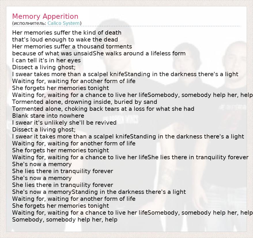 А как ты думаешь, о чем песня "Memory Apperition" ?