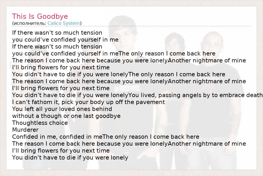 А как ты думаешь, о чем песня "This Is Goodbye" ?