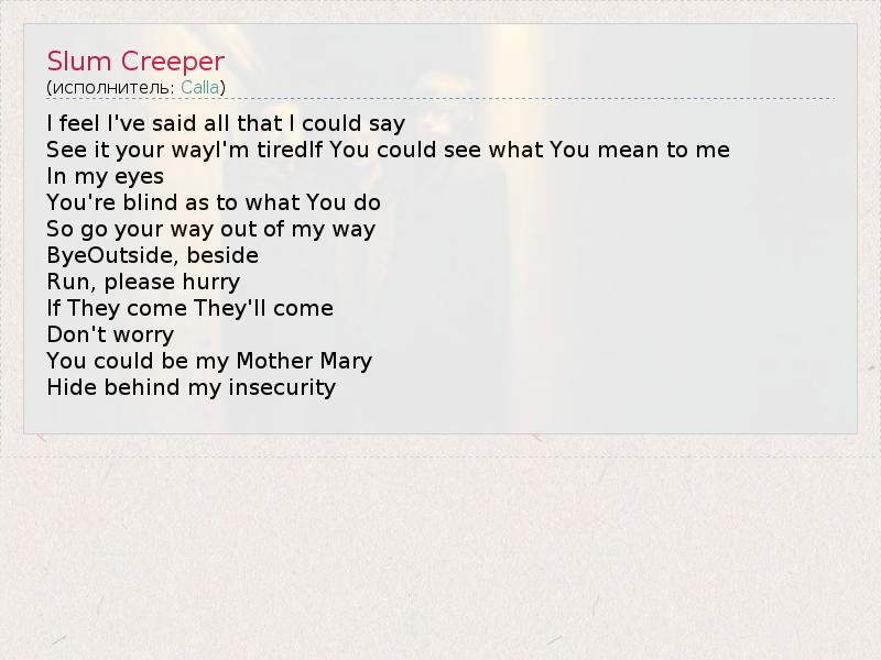 А как ты думаешь, о чем песня "Slum Creeper" ?