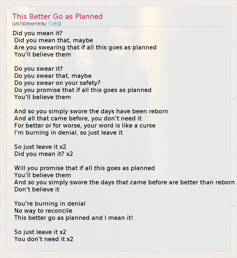 А как ты думаешь, о чем песня "This Better Go as Planned" ?