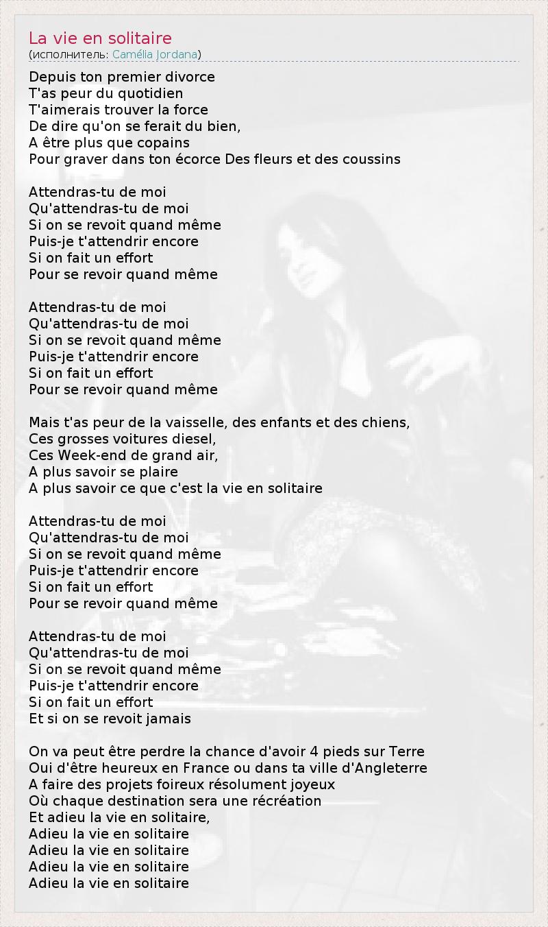 А как ты думаешь, о чем песня "La vie en solitaire" ?