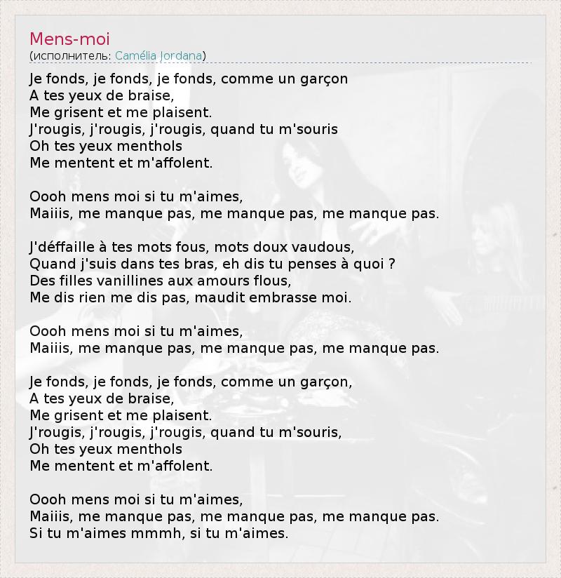 А как ты думаешь, о чем песня "Mens-moi" ?