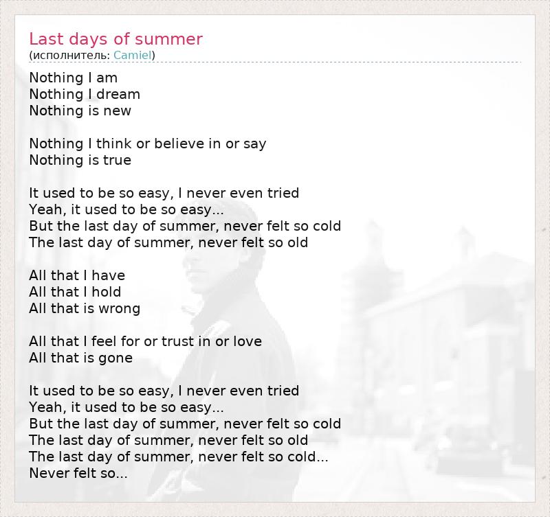 А как ты думаешь, о чем песня "Last days of summer" ?