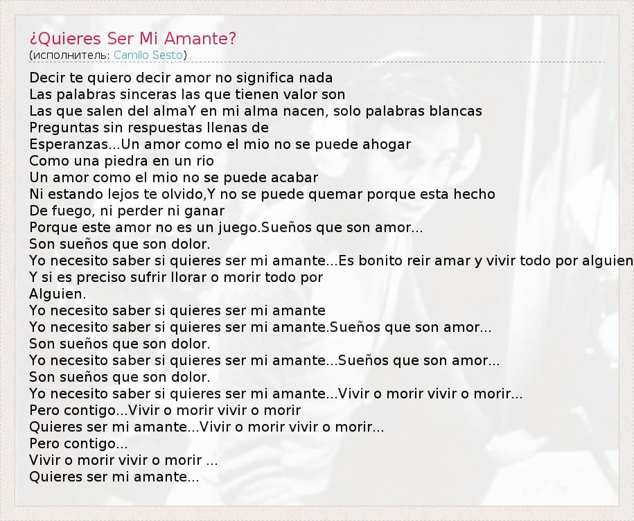 А как ты думаешь, о чем песня "¿Quieres Ser Mi Amante?" ?