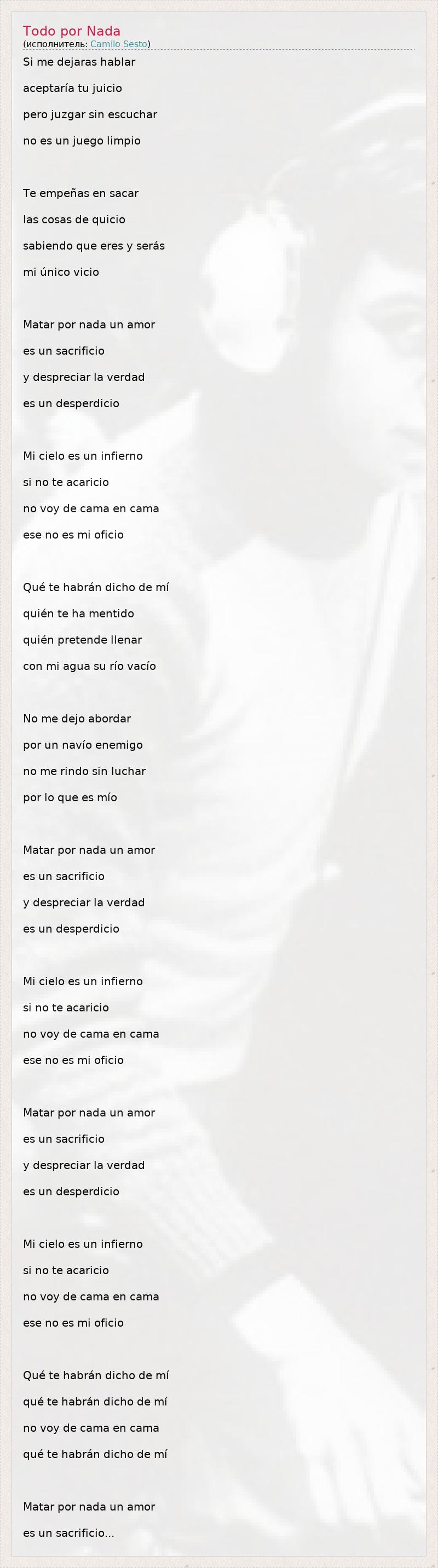 А как ты думаешь, о чем песня "Todo por Nada" ?