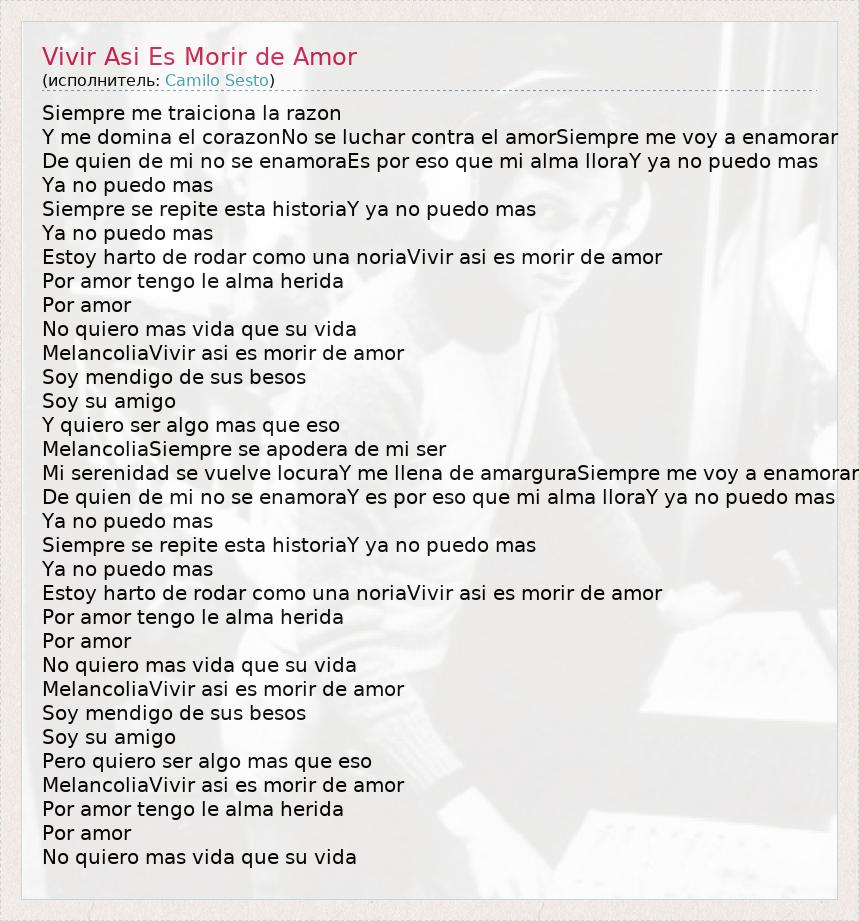 А как ты думаешь, о чем песня "Vivir Asi Es Morir de Amor" ?