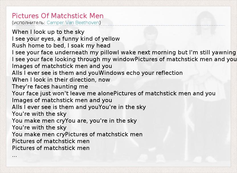 А как ты думаешь, о чем песня "Pictures Of Matchstick Men" ?