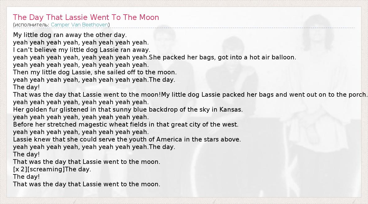 А как ты думаешь, о чем песня "The Day That Lassie Went To The Moon" ?