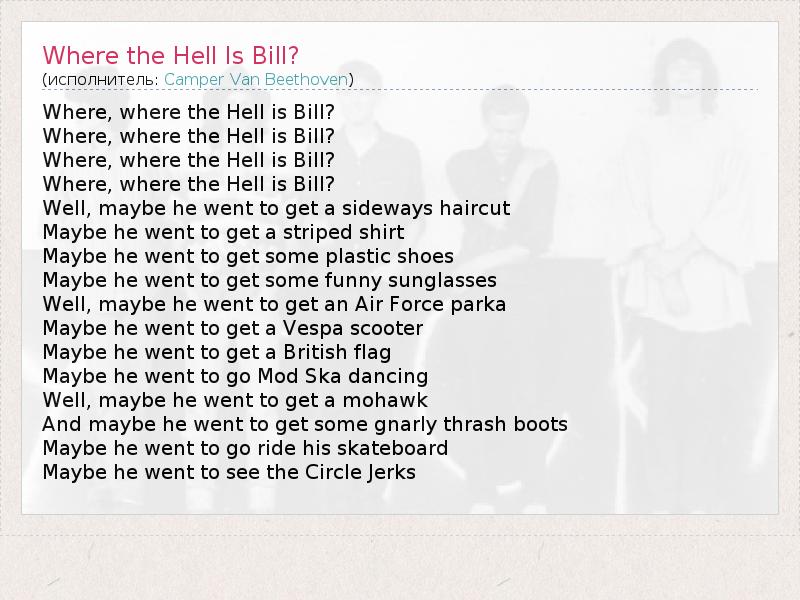 А как ты думаешь, о чем песня "Where the Hell Is Bill?" ?