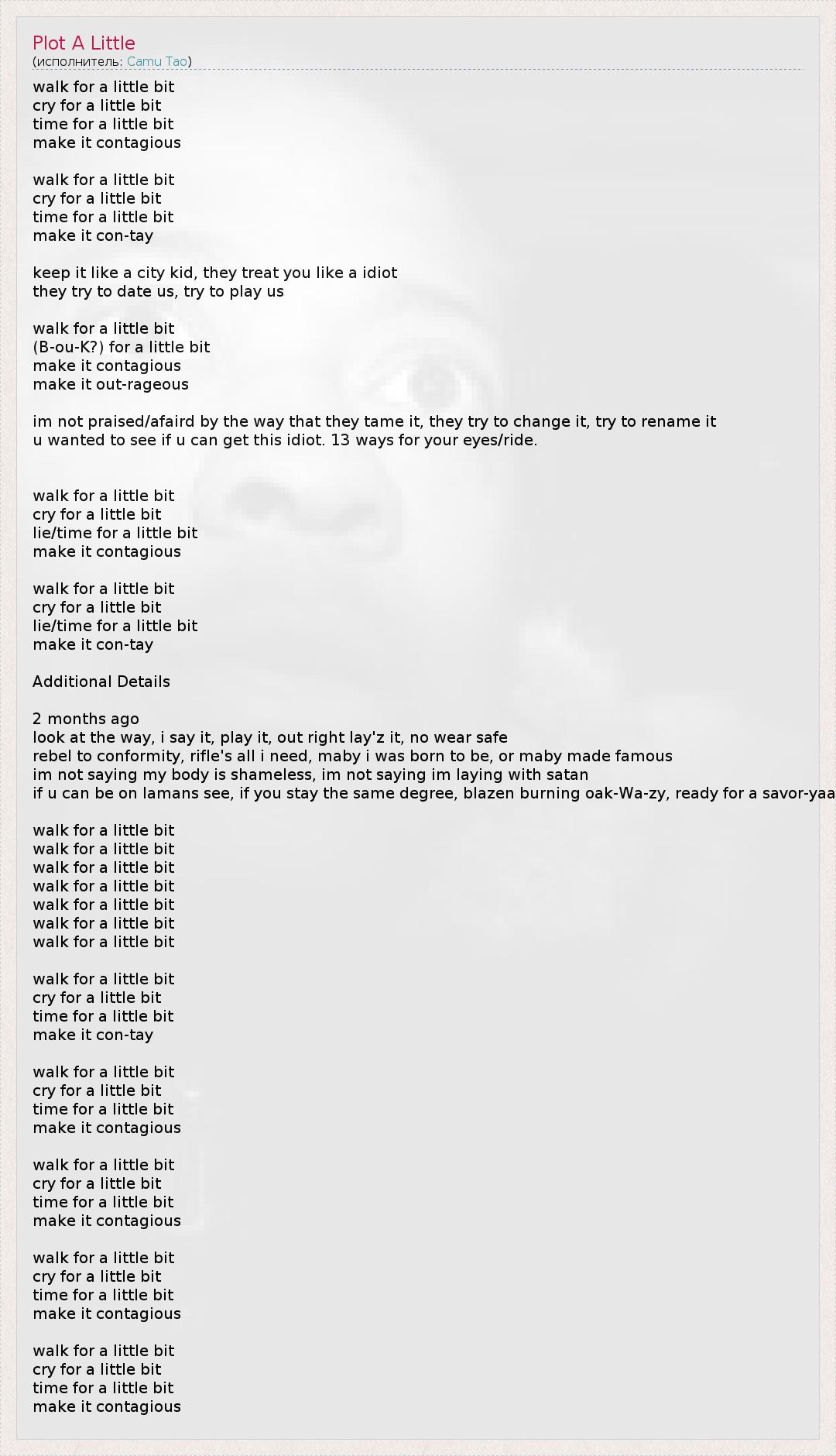 А как ты думаешь, о чем песня "Plot A Little" ?