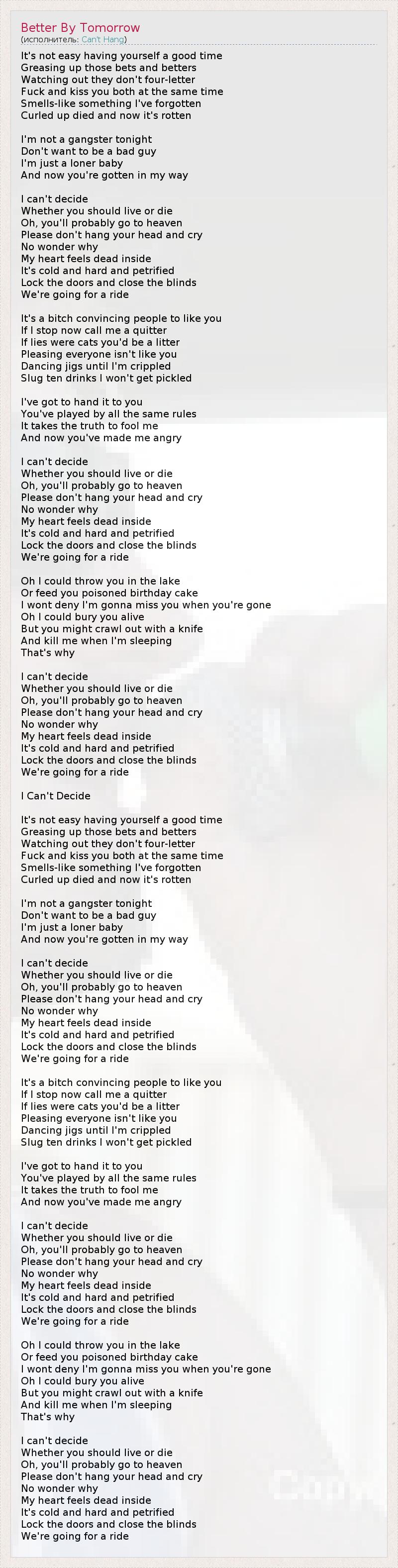 А как ты думаешь, о чем песня "Better By Tomorrow" ?