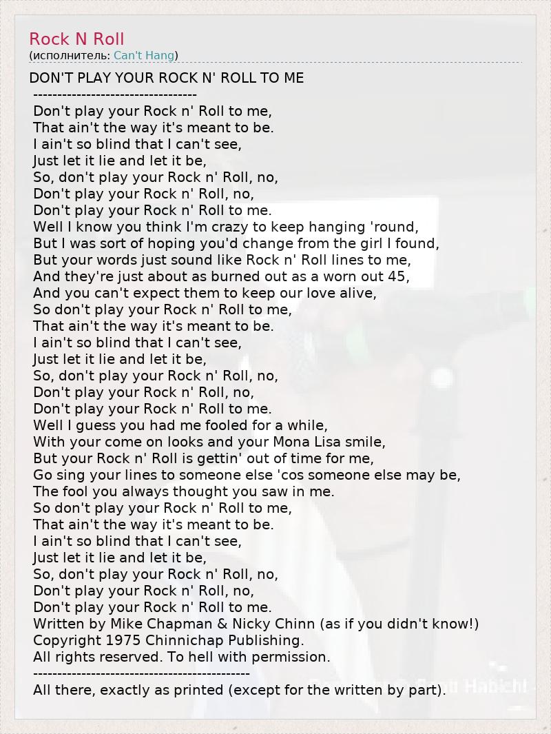 А как ты думаешь, о чем песня "Rock N Roll" ?
