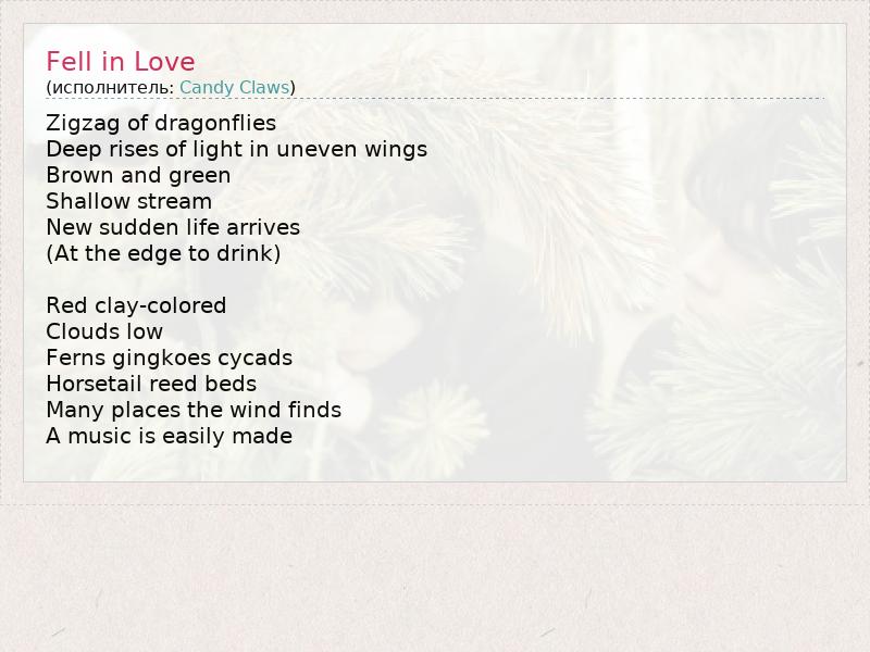 А как ты думаешь, о чем песня "Fell in Love" ?