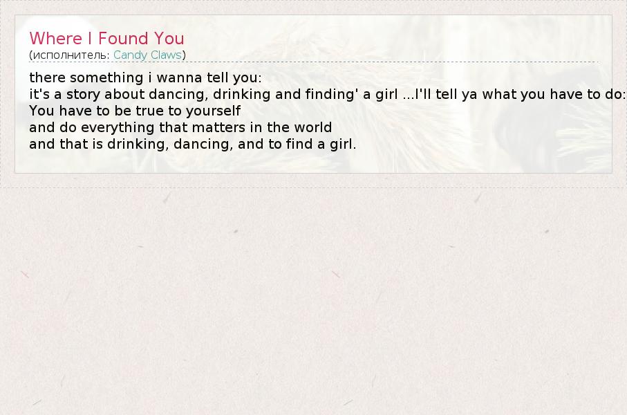 А как ты думаешь, о чем песня "Where I Found You" ?