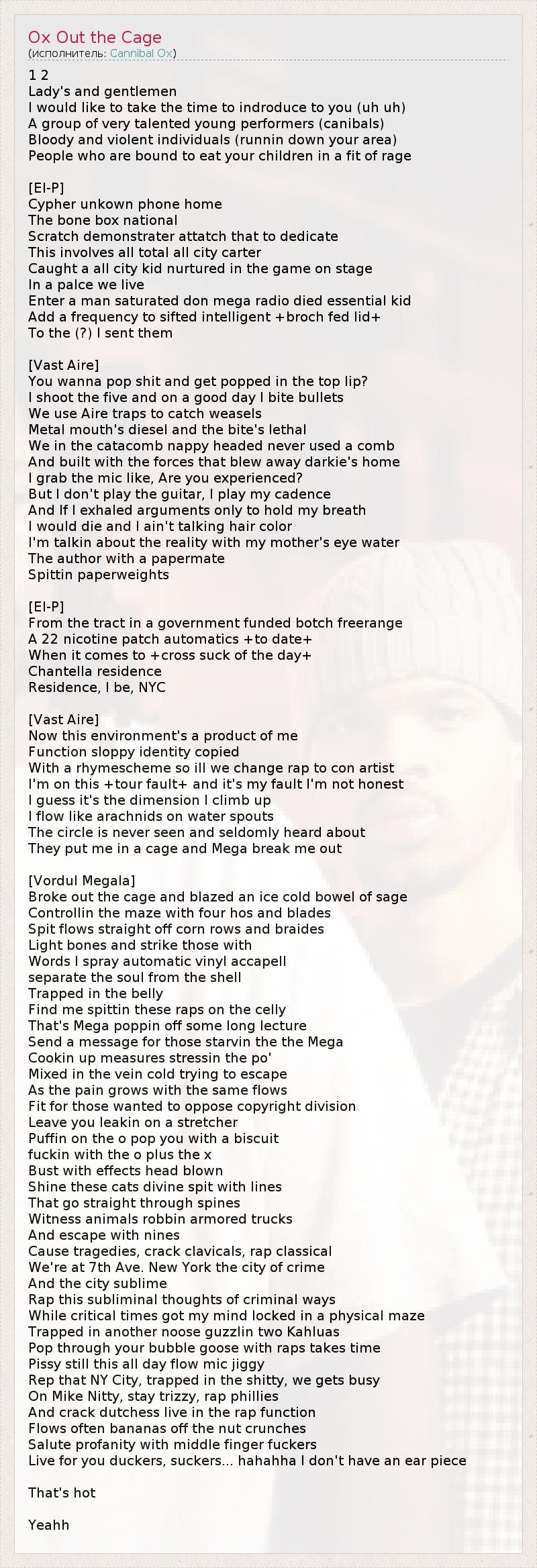 А как ты думаешь, о чем песня "Ox Out the Cage" ?