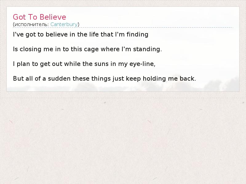 А как ты думаешь, о чем песня "Got To Believe" ?