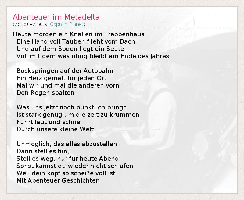 А как ты думаешь, о чем песня "Abenteuer im Metadelta" ?