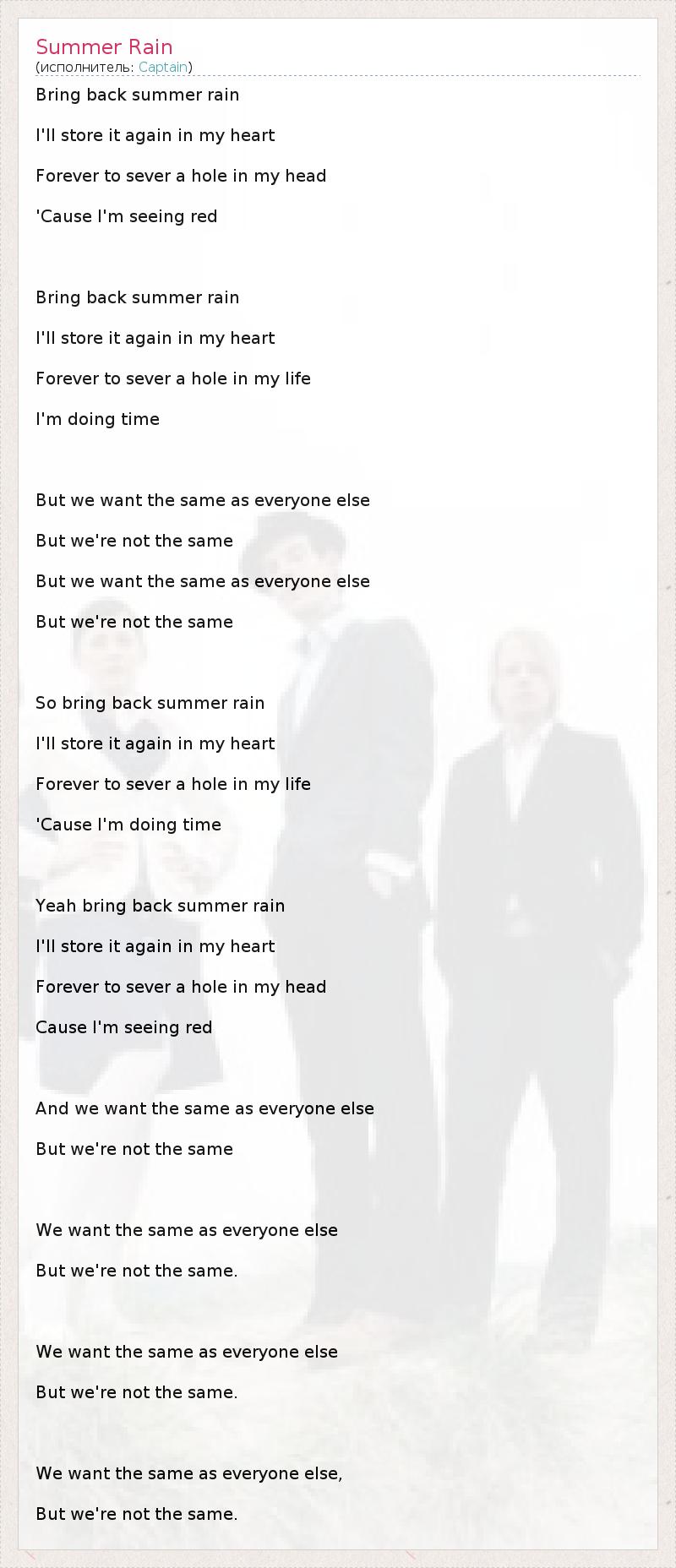А как ты думаешь, о чем песня "Summer Rain" ?