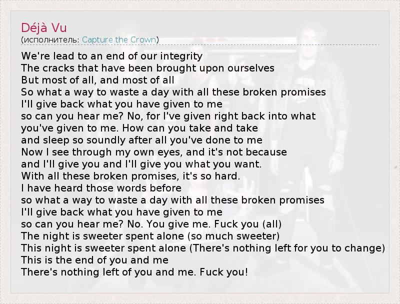 А как ты думаешь, о чем песня "Déjà Vu" ?