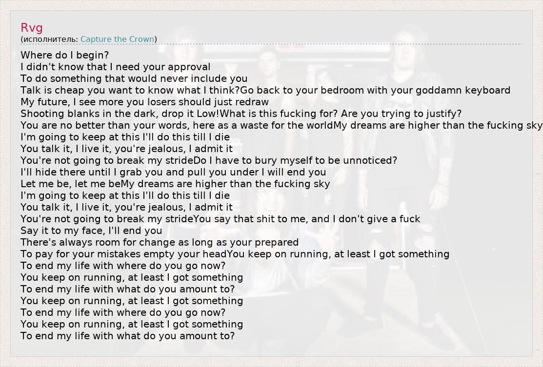 To pay for your mistakes empty your headYou keep on running, at least I got something