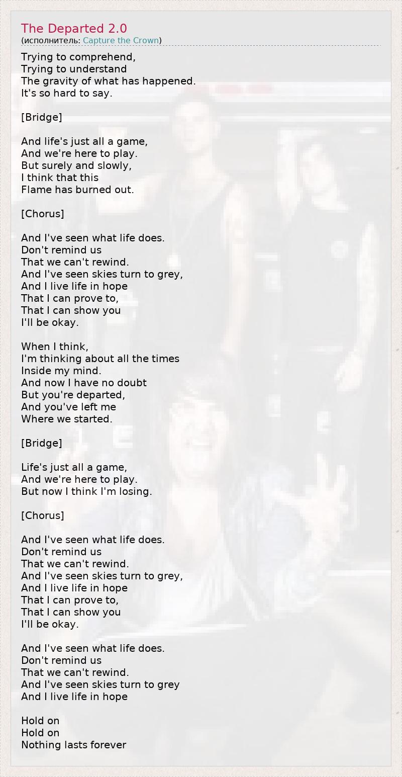А как ты думаешь, о чем песня "The Departed 2.0" ?