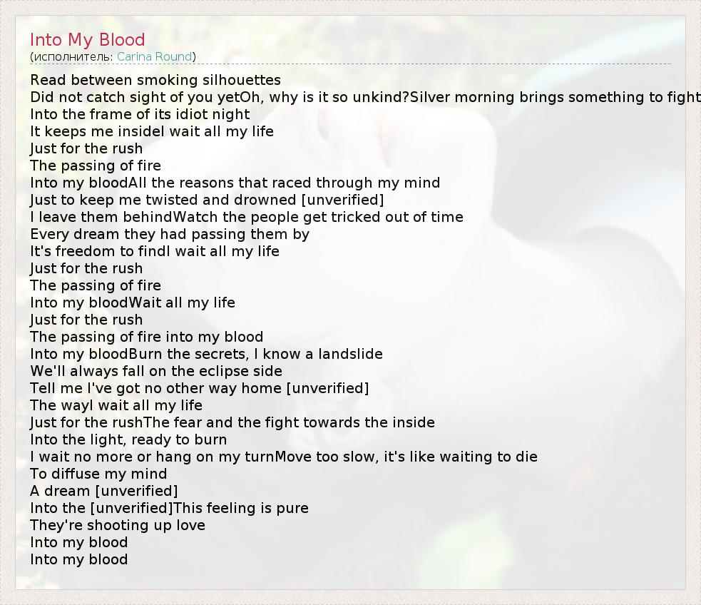 А как ты думаешь, о чем песня "Into My Blood" ?