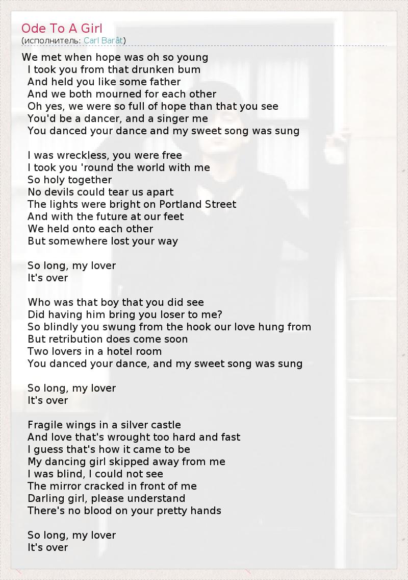 А как ты думаешь, о чем песня "Ode To A Girl" ?