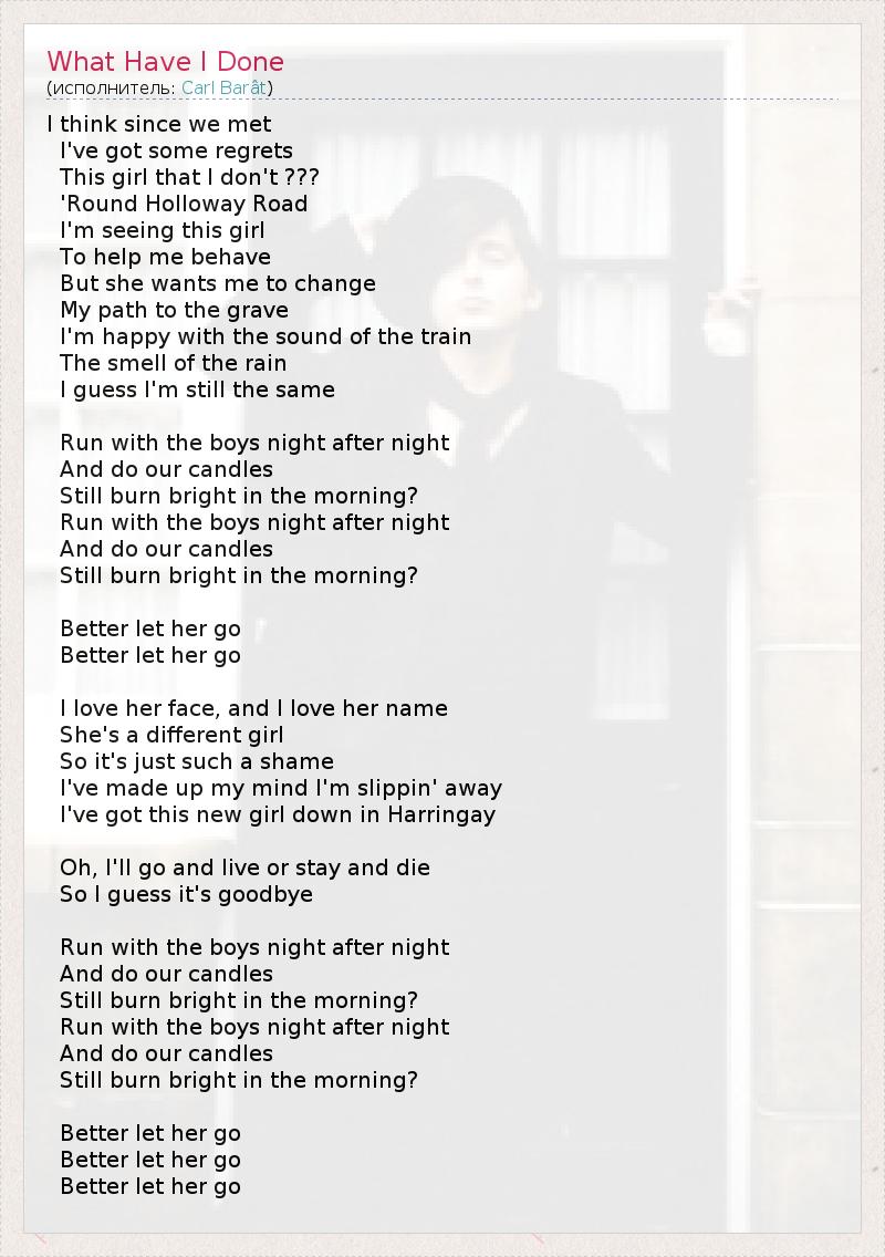 А как ты думаешь, о чем песня "What Have I Done" ?