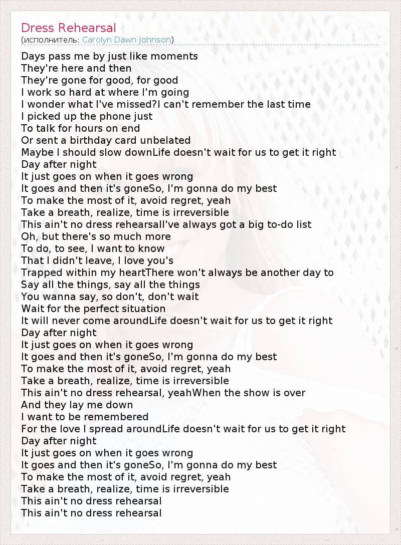 А как ты думаешь, о чем песня "Dress Rehearsal" ?