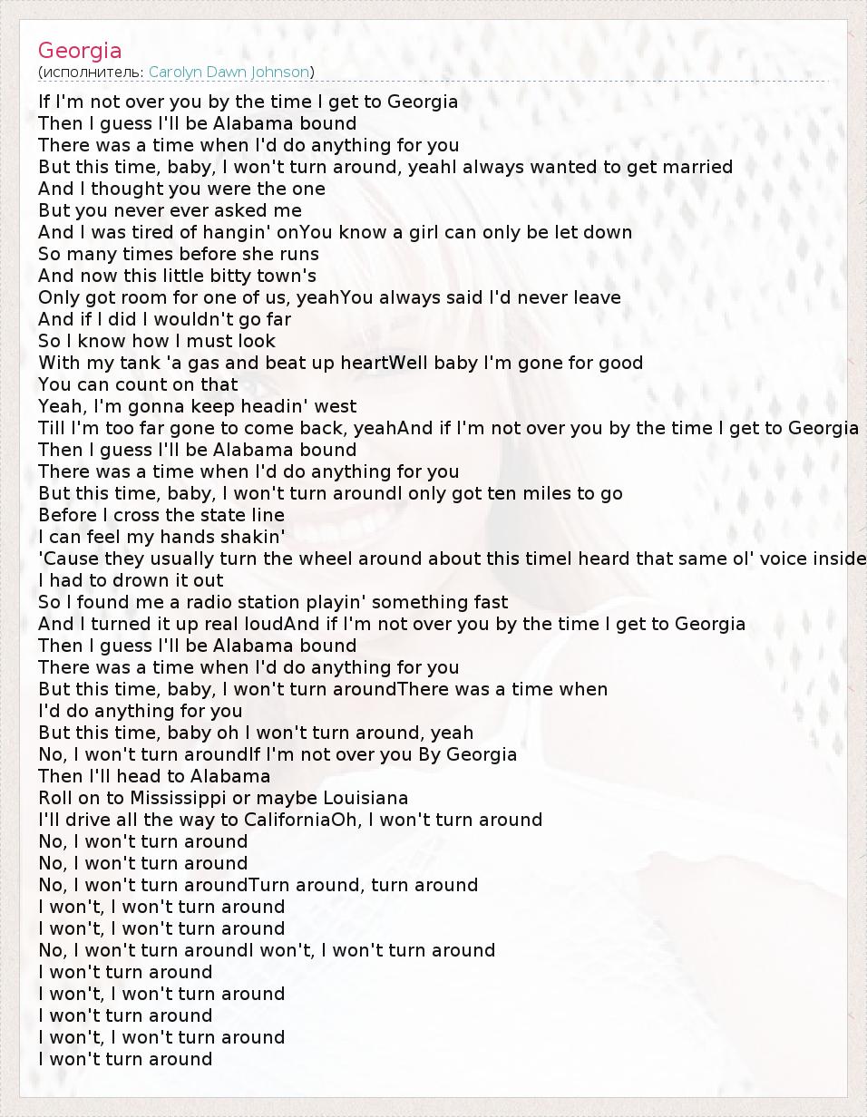 And I turned it up real loudAnd if I'm not over you by the time I get to Georgia
