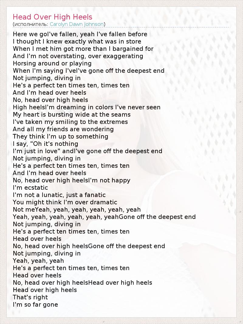 А как ты думаешь, о чем песня "Head Over High Heels" ?