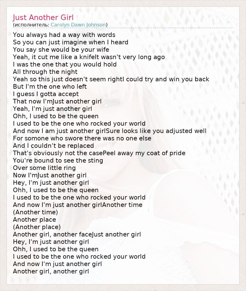 А как ты думаешь, о чем песня "Just Another Girl" ?