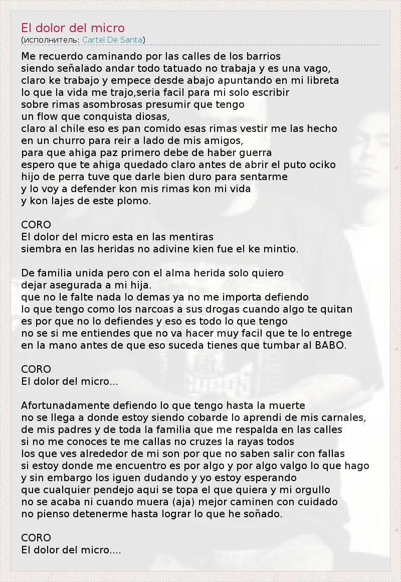 А как ты думаешь, о чем песня "El dolor del micro" ?