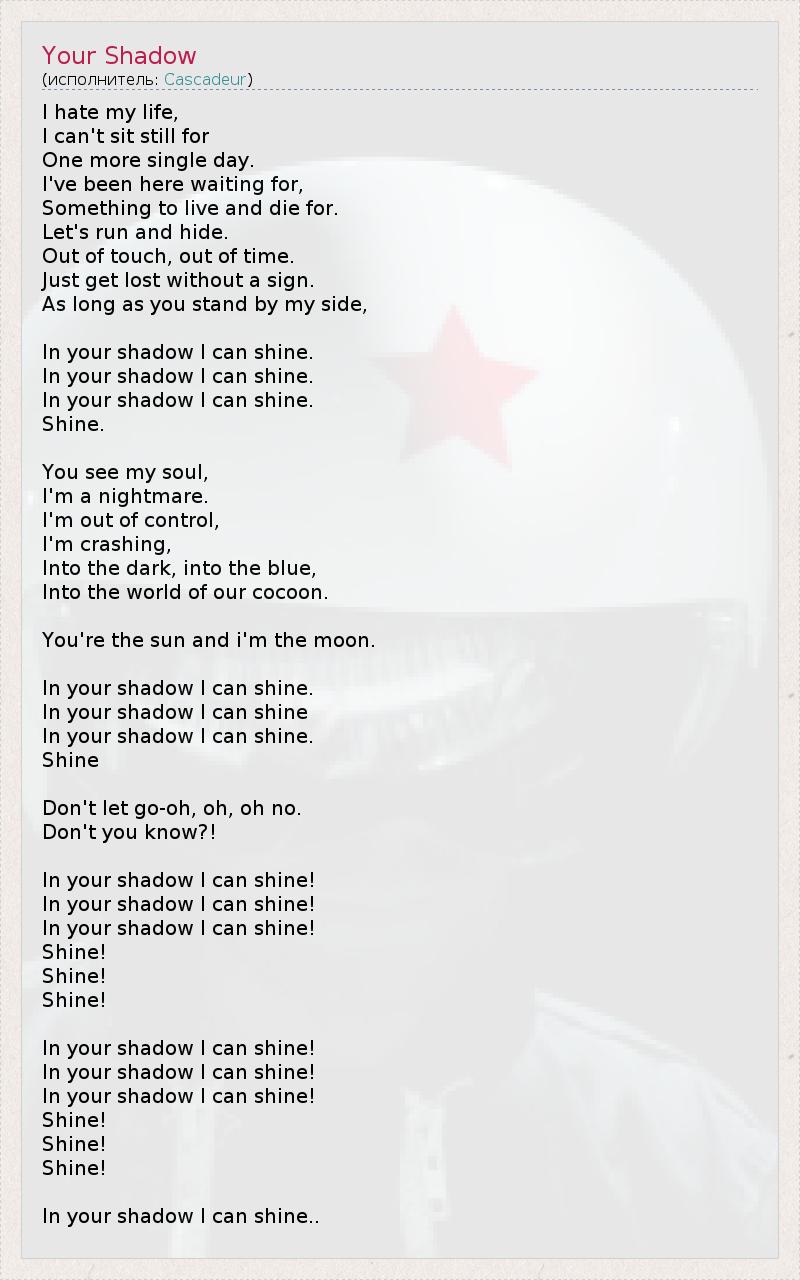 А как ты думаешь, о чем песня "Your Shadow" ?