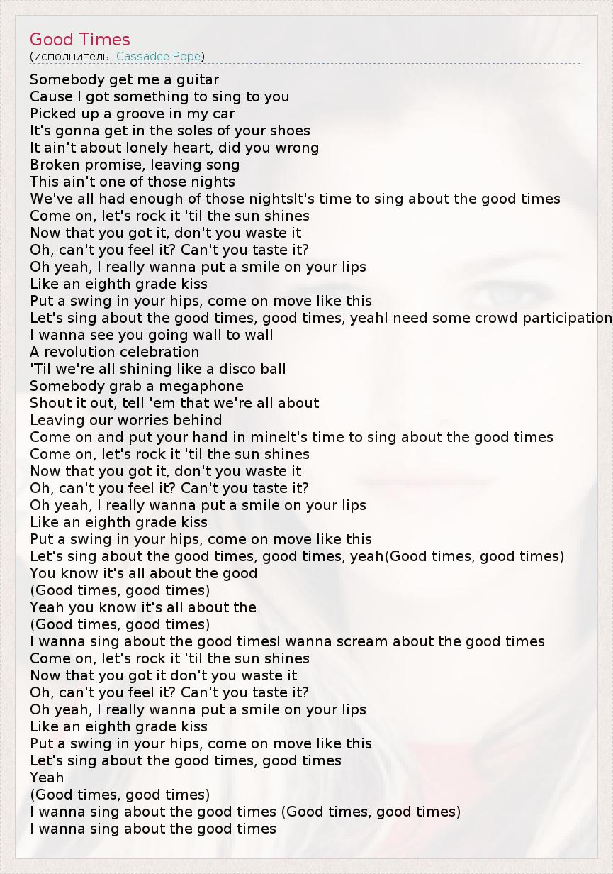 Let's sing about the good times, good times, yeah(Good times, good times)