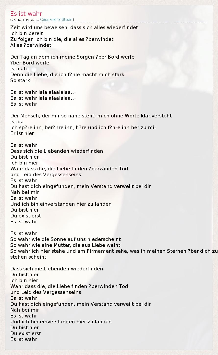 А как ты думаешь, о чем песня "Es ist wahr" ?