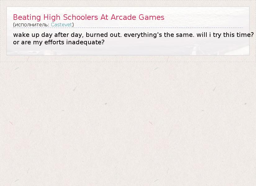 А как ты думаешь, о чем песня "Beating High Schoolers At Arcade Games" ?